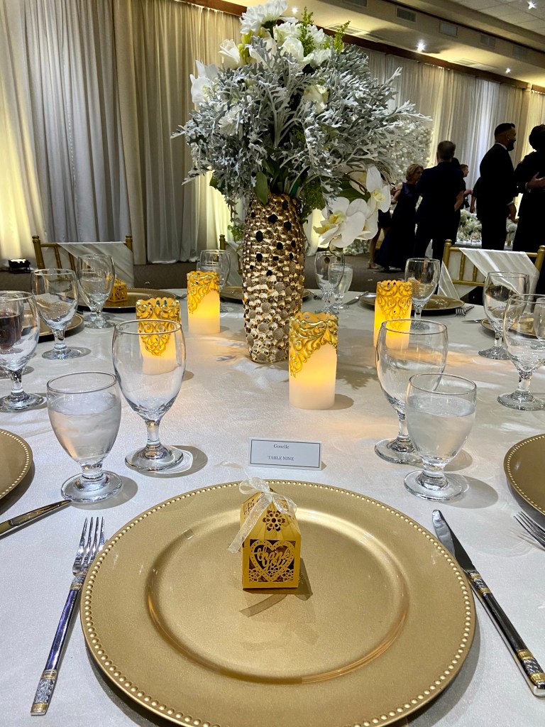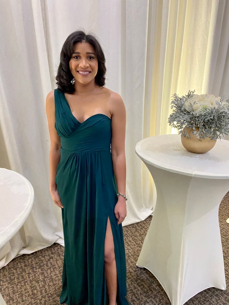 My best friend and I had a difficult time trying to decide what to wear. We searched for weeks, but ultimately both decided on floor length gowns. She opted for a burgundy/wine colored dress and I opted for an emerald green one-shoulder dress. I paired it with silver strappy sandals, diamond studs, and a jade and silver bracelet. It was nice to dress up for such a special event, but it’s the memory of the time spent together that’s even more special.