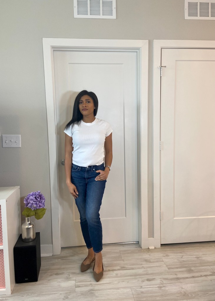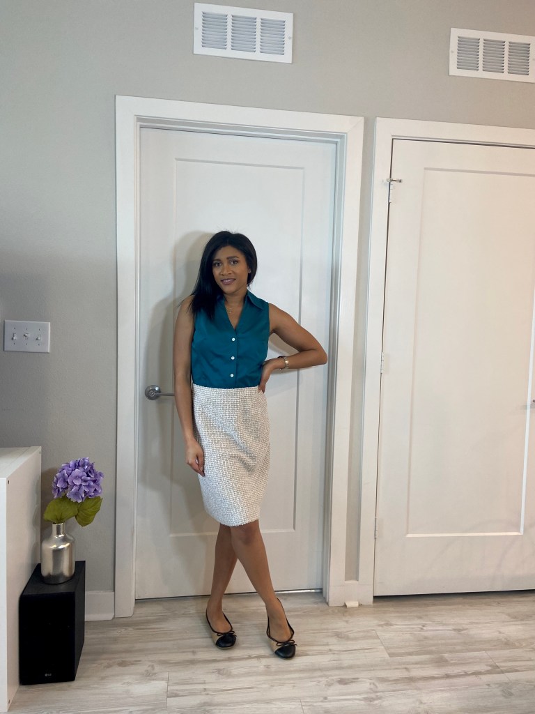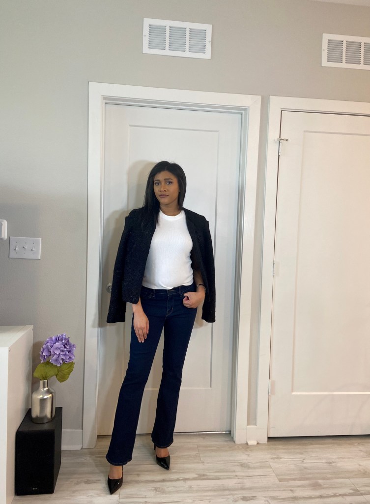 I collected a variety of items from fall 2022 to winter 2023 and I have rounded up all of those purchases in one post today. I picked up a Jason Wu Collective black and white belted dress, Nicholas floral midi dress, Ann Taylor teal blouse, St. John skirt suit, Endless Rose dress, three different pairs of jeans and a Saks Fifth Avenue collection blazer. One thing I started doing recently is selecting the “New with Tags” option for jeans. So that is an option you can select when shopping on ThredUp as well.